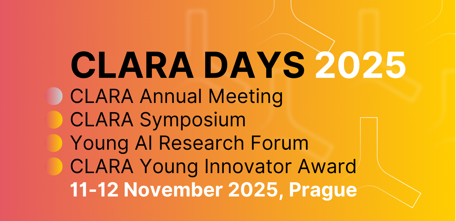 CLARA Days is CLARA's contribution to the nationwide AI Days 2025 (www.dny.ai), a Czech Republic-wide initiative aimed at broadening awareness of AI across academia, business, civil society, and the general public. With the invited participation of an academic and student delegation from Lviv, Ukraine, CLARA Days will also strengthen international collaboration and capacity building.